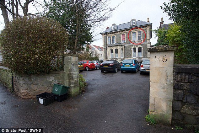 One of Ms Jarvis's friends gave her a 'leg-up' to reach an upper window (circled) but the brickwork