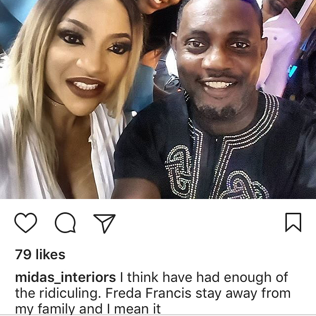 and Freda Francis who is Iyanya’s ex-girlfriend, in which the former