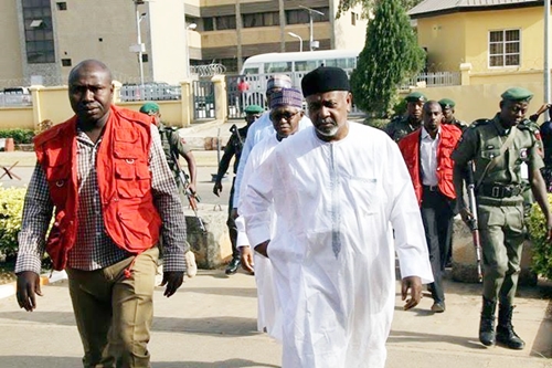 Dasuki (in white kaftan) during a court appearance in Abuja