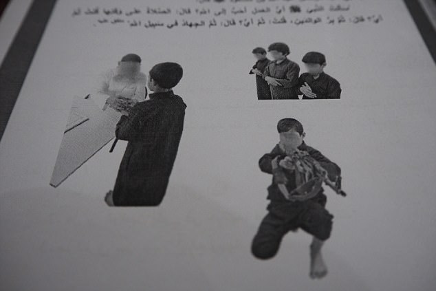 The textbooks were found in the last town militants occupied in Northern Iraq