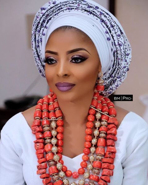 was spotted wearing traditional Itsekiri outfit - a white top with a