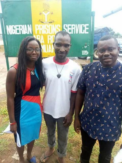 Uchenna Kalu (middle) after being released from prison