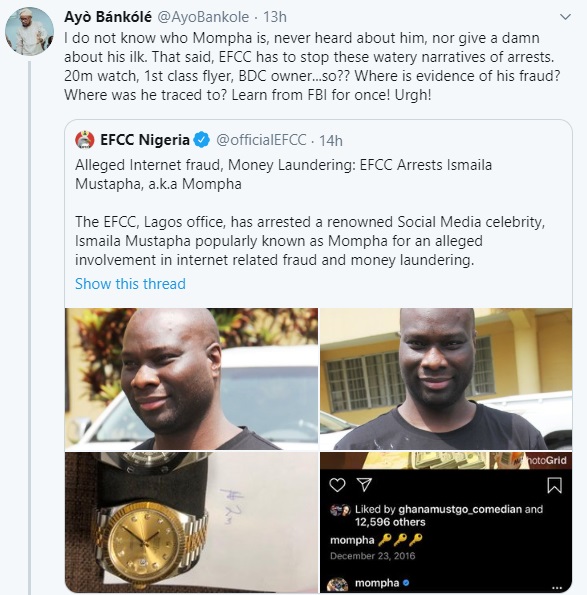 The Nigerians who took to Twitter asked the anti-graft agency to provide proof that Mompha is a fraudster.