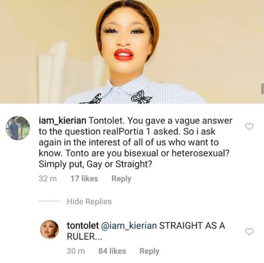 Nollywood actress, Tonto Dikeh has addressed rumours that she's a lesbian.